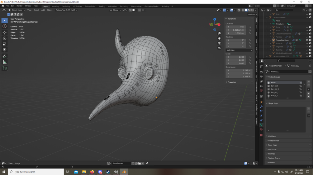 I decided to put together a fun little mask for a recent project I was working on, I've been practicing texturing mesh more and more, getting better though unless I keep making little things here and there I wont get any better. Since I made this so fast though I dont think its worth money, but some people could get use out of it.